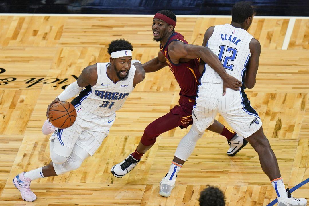 Orlando Magic Guard Terrence Ross 31 Drives Around Cleveland Cavaliers Guard Damyean Dotson Center As Forward Gary Clark 12 Sets A Pick During The Second Half Of An Nba Basketball Game Monday - Official page for damyean dotson sg #21#twitch psn: