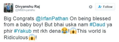 Irfan Pathan Names New Born Son Imran Khan Pathan - A fan divyanshu raj had congratulated irfan on being blessed with a baby boy but taunted him to not name him daud or a yakub.