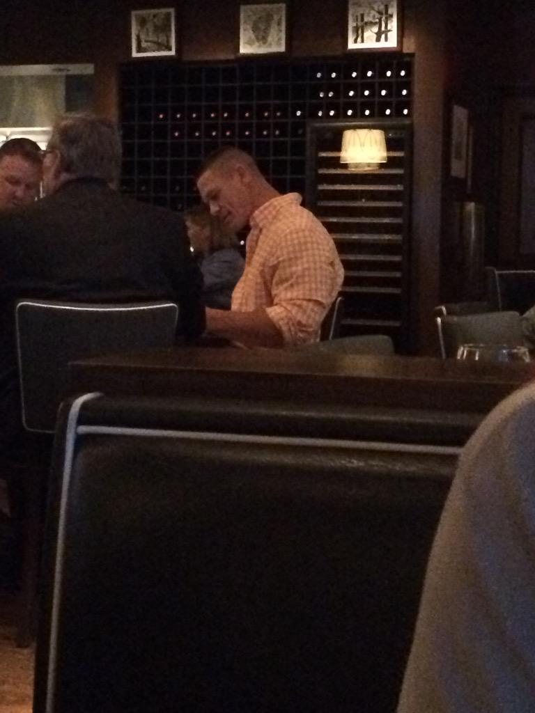 John Cena Eating Dinner John Cena Eating Dinner / John cena spends 45 minutes to an hour warming up when he goes to the gym.