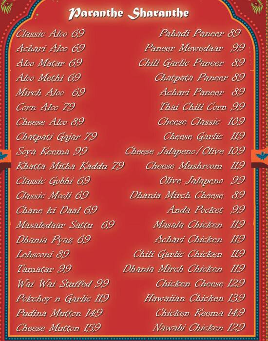 Paranthe Wali Gali Menu